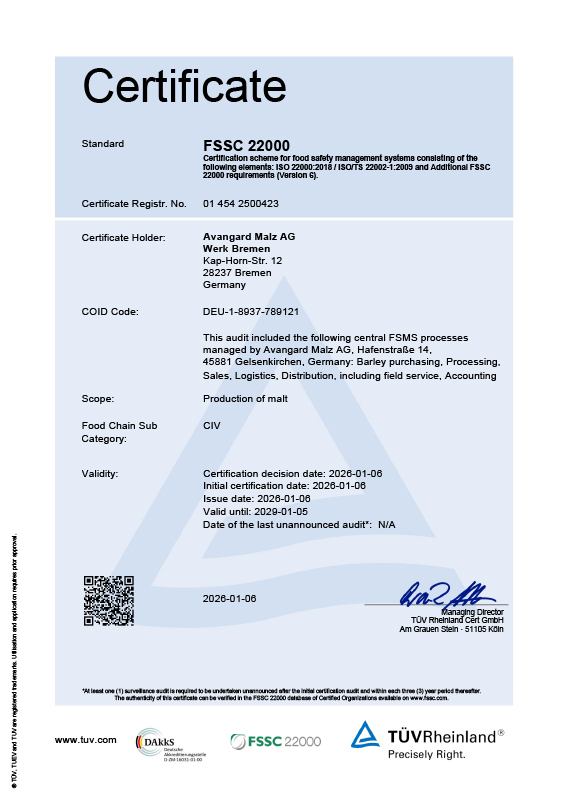 More interested in AVANGARD MALZ? In the Download Section you can load specifications, certificates and actual information.
